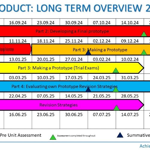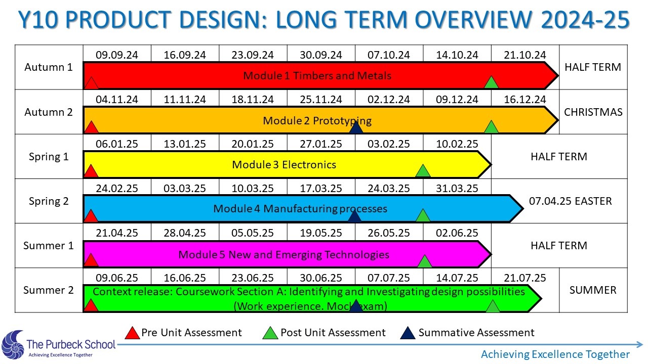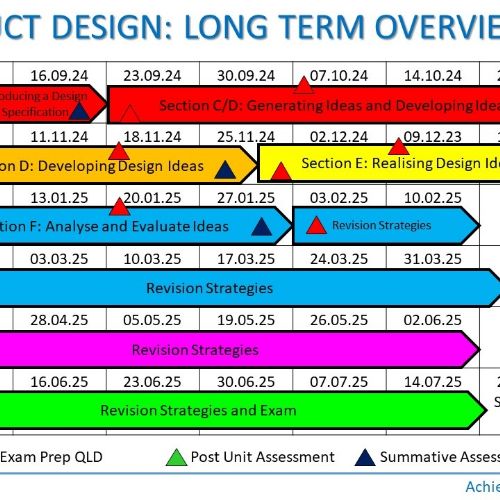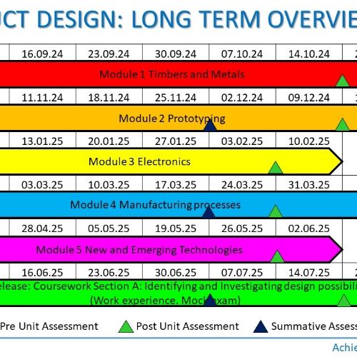 A long term overview of the curriculum studied by students in Design and Technology from Year 7 to Year 9