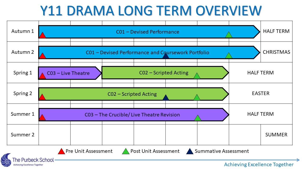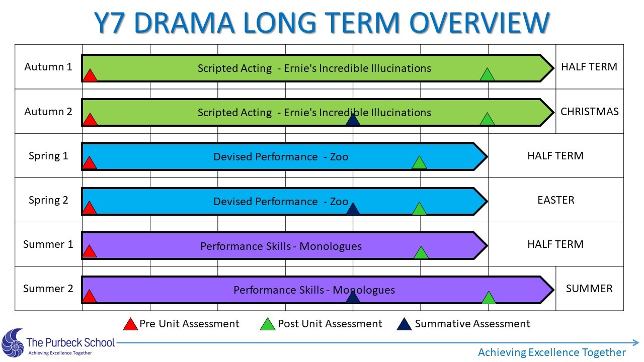 A long term overview of the curriculum studied by students in Drama from Year 7 to 11