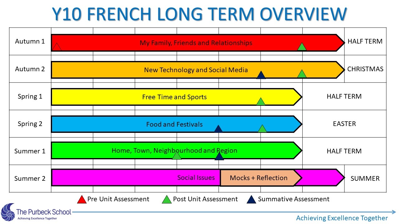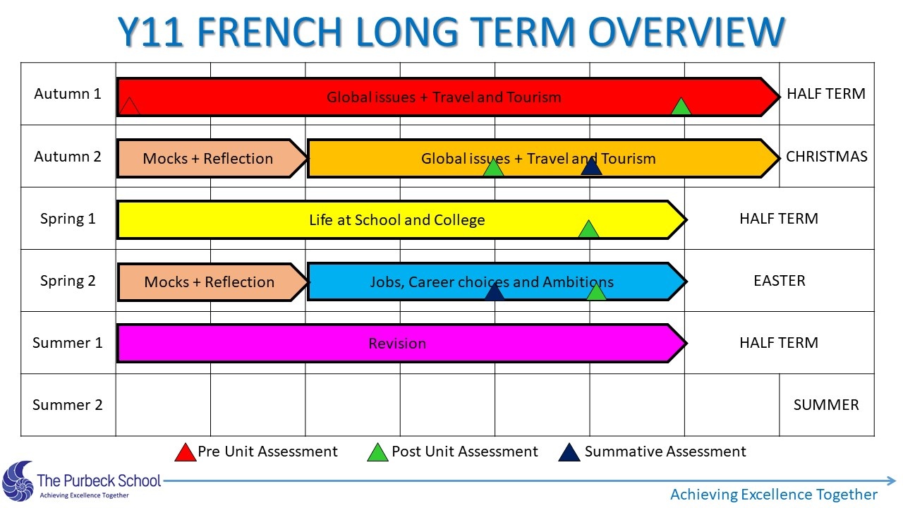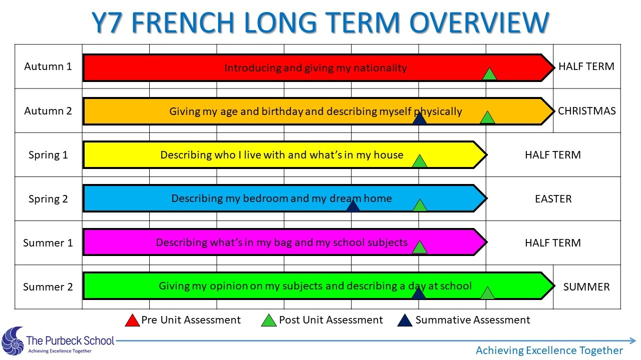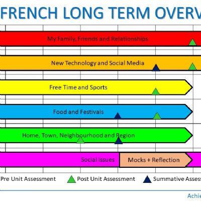 A long term overview of the curriculum studied by students in French from Year 7 to 11