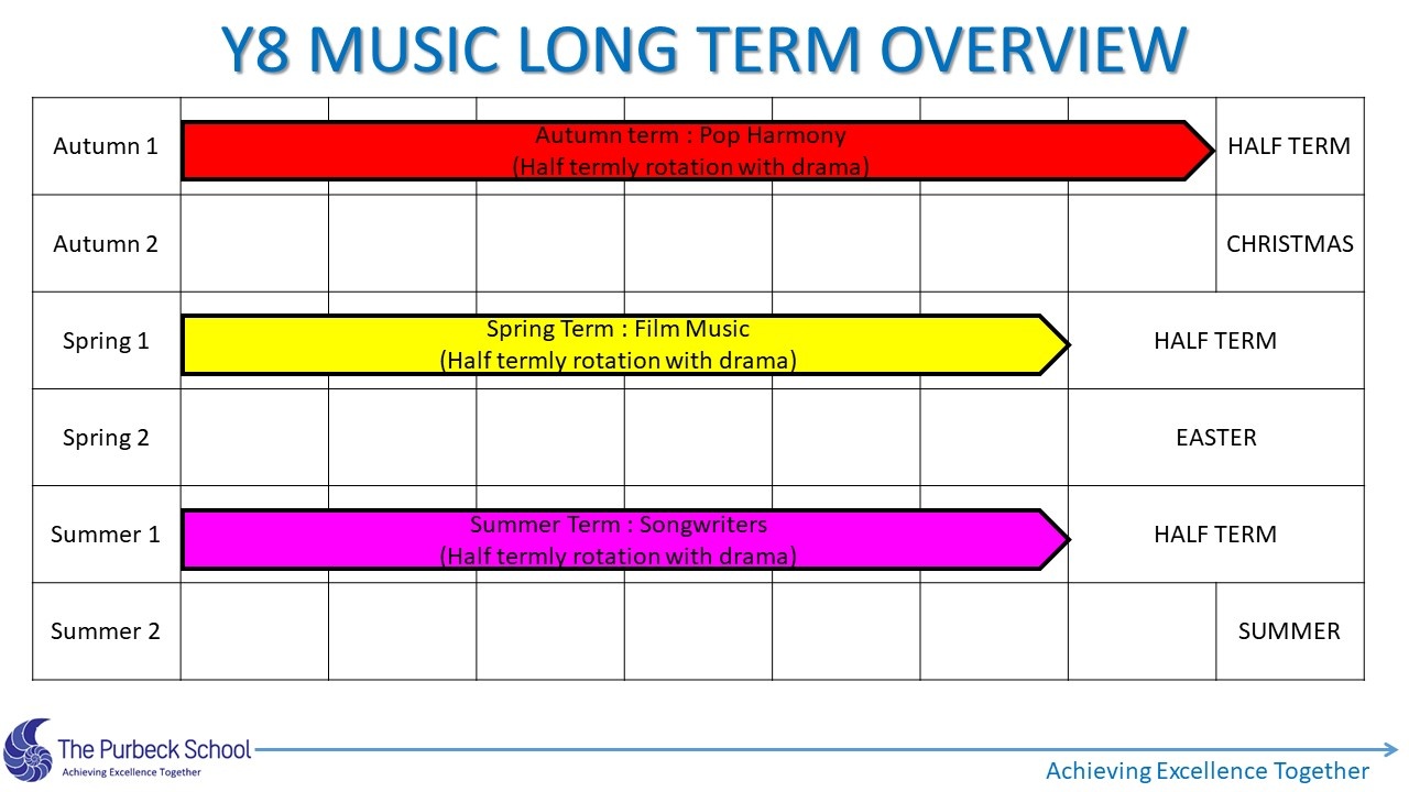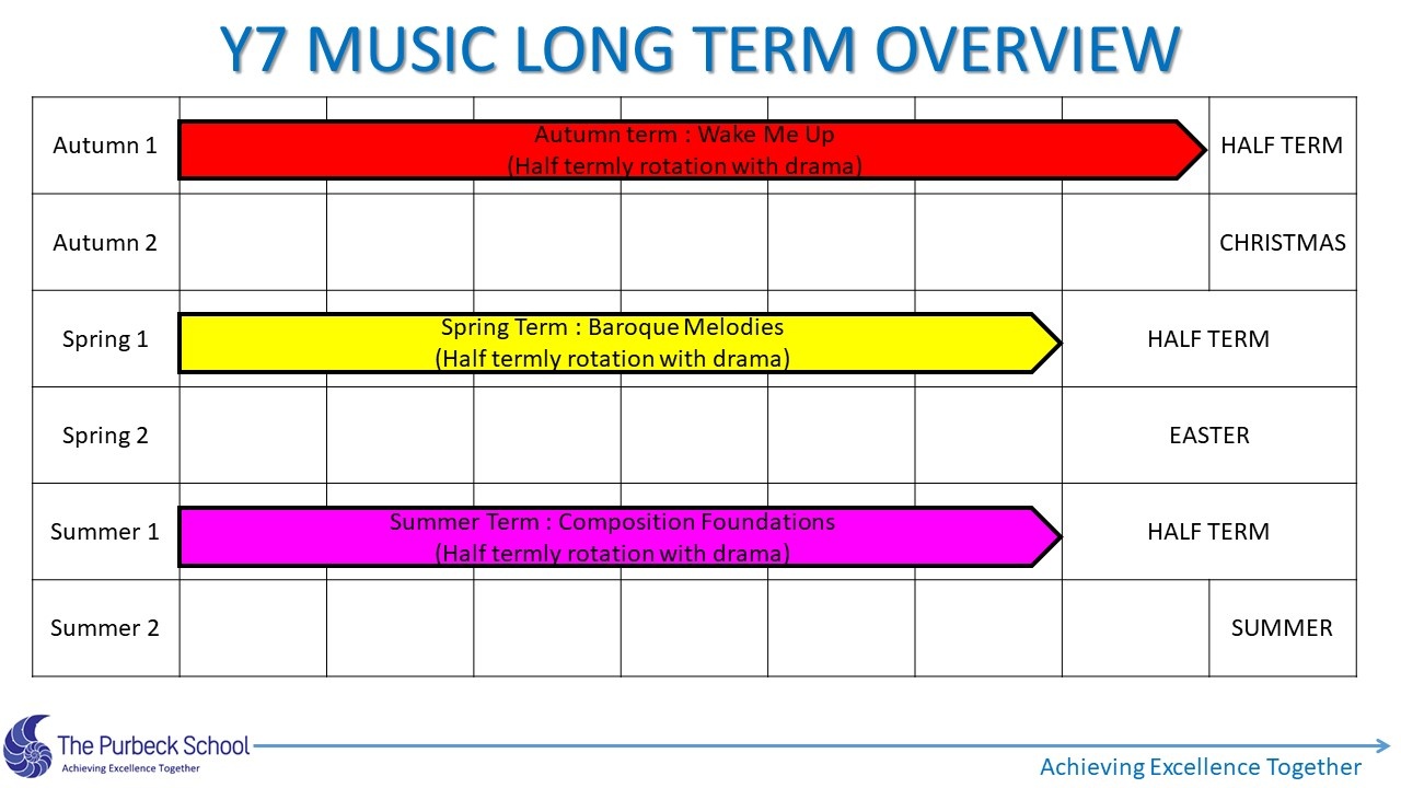 A long term overview of the curriculum studied by students in Music from Year 7 to 9