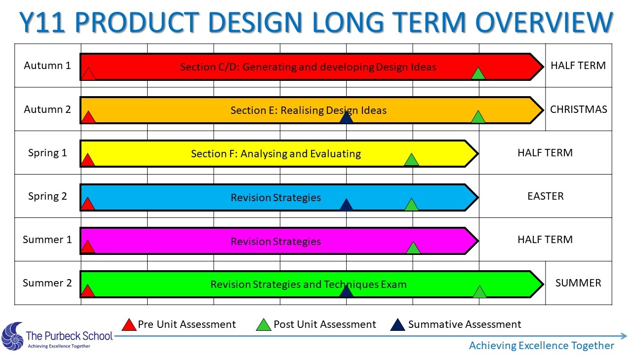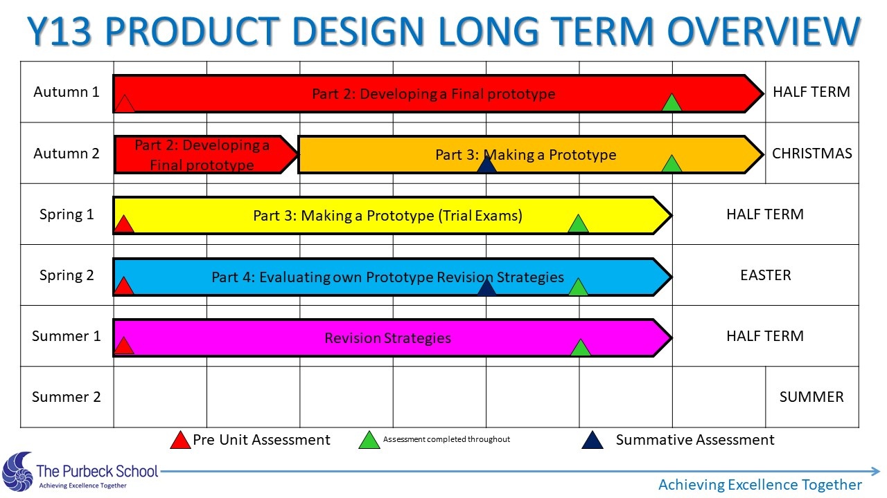 A long term overview of the curriculum studied by students in Product Design from Year 10 to Year 13
