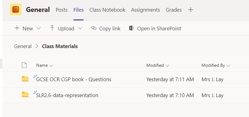 These are the files/folders of resources, e.g. PowerPoints, Word docs etc., that your teacher has uploaded for you to use.
