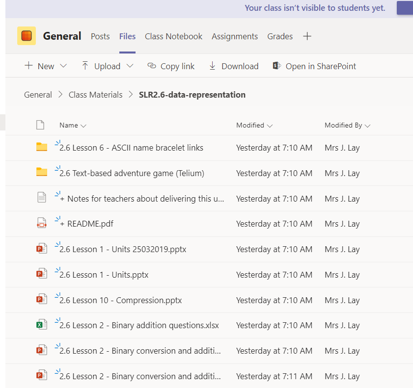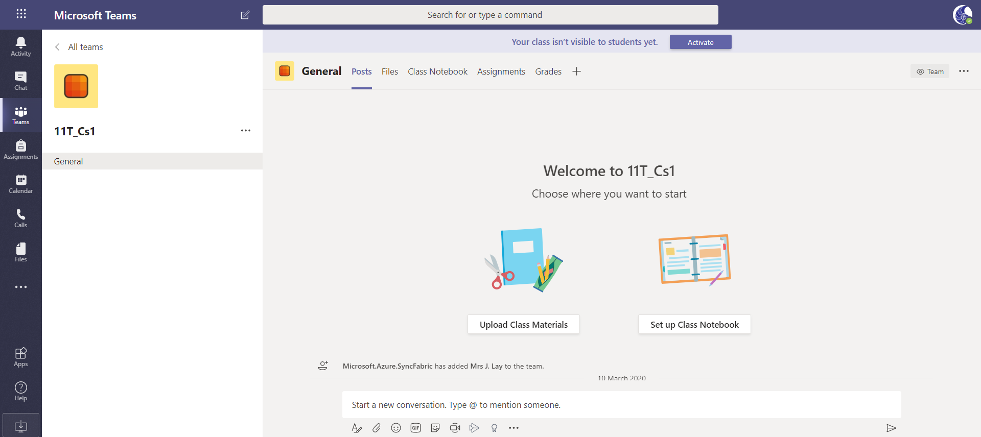 7. Click on one of the teams/classes. E.g. 11T/Cs1 (my Y11 Computing class).