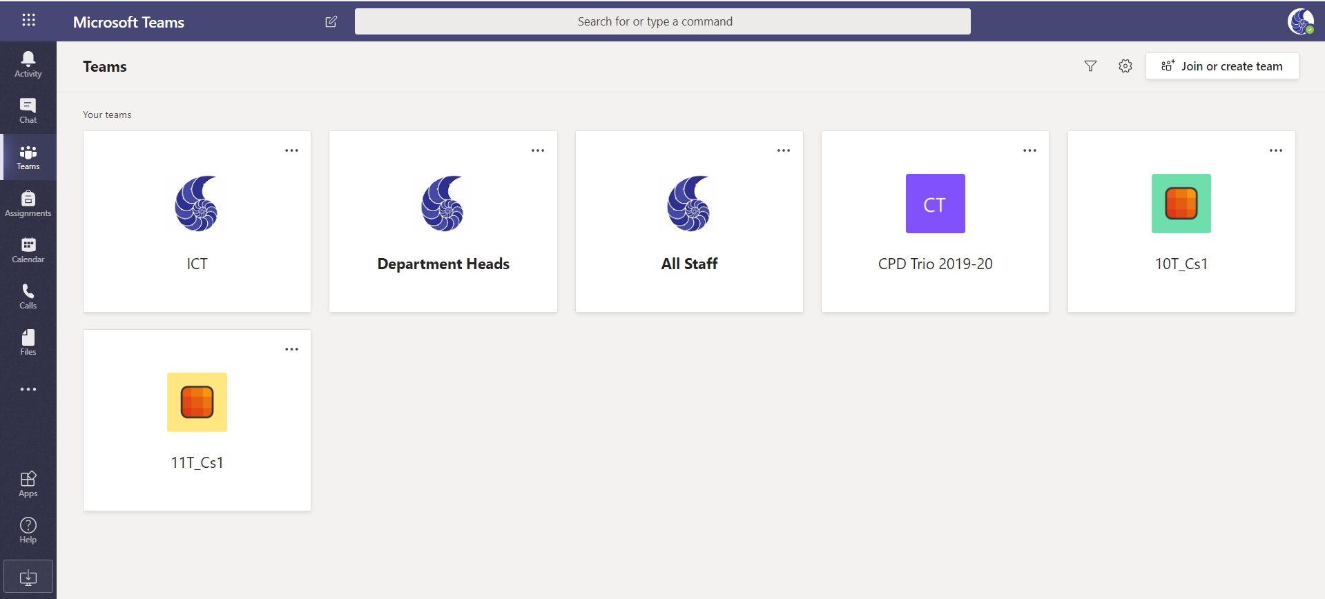 6. Your screen will show the teams (classes) that have been set up for you.