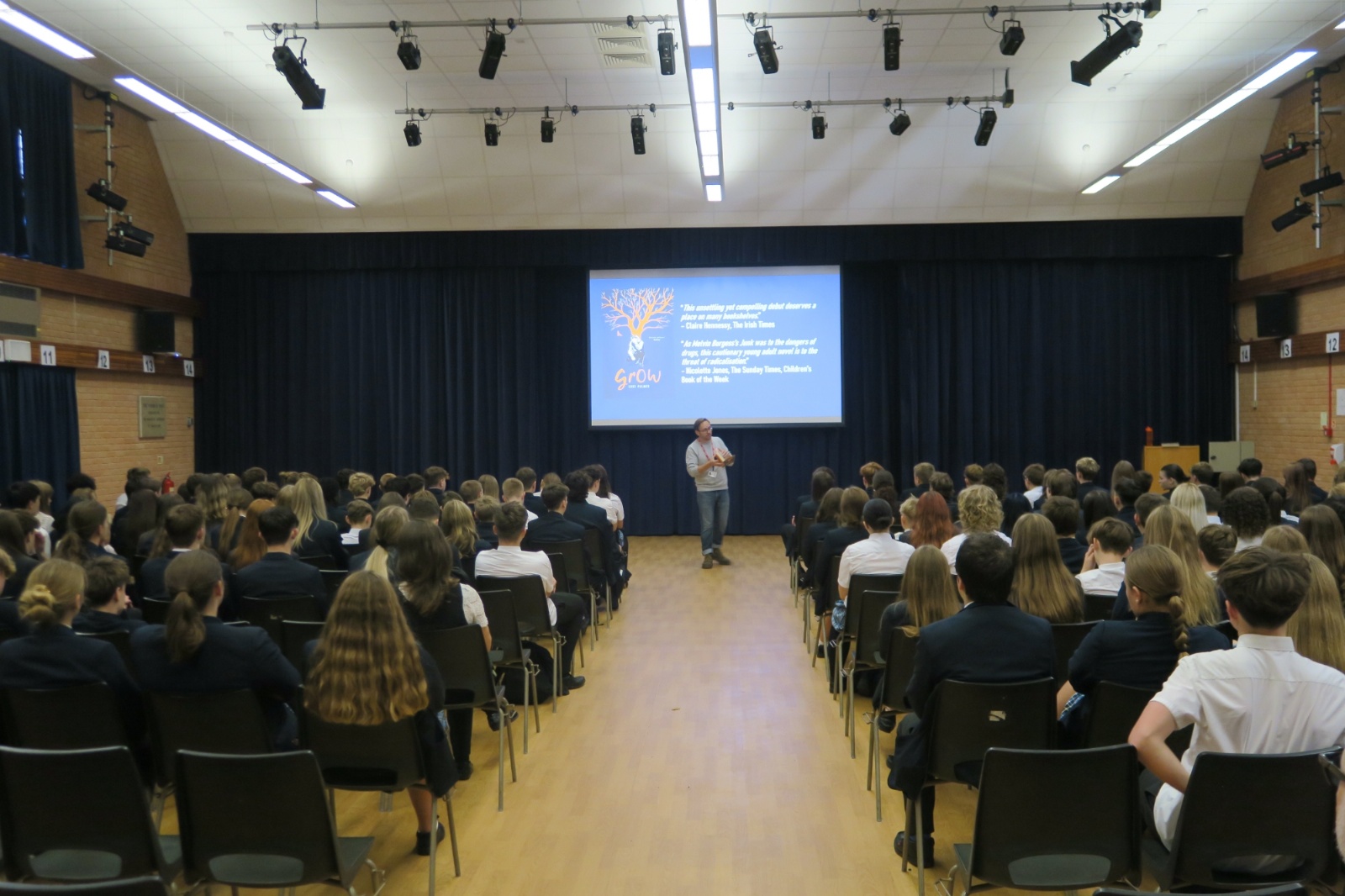 His talk was full of personal anecdotes and had everyone laughing from the start. 13 very willing volunteers even managed to present a speed version of one of his novels. Luke Palmer spoke to the whole of Year 10 with a talk based on his book ‘Grow’; an exploration of grief and resilience, highlighting the threats of radicalisation amongst vulnerable teenagers. The two topics could not have been more different yet each was thoroughly appreciated and enjoyed by the pupils. Both authors spent time afterwards chatting to pupils and signing copies of their books.