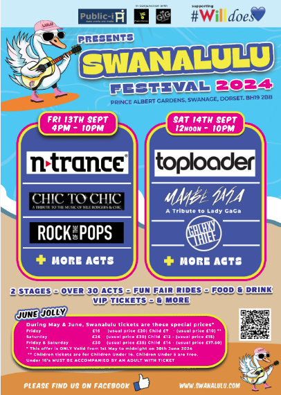 Fri 13 and Sat 14 Sept                     https://www.eventbrite.co.uk/e/swanalulu-fri-13-sept-n-trancesat14-sept-2024-toploader-the-purbeck-school-tickets-948474762547