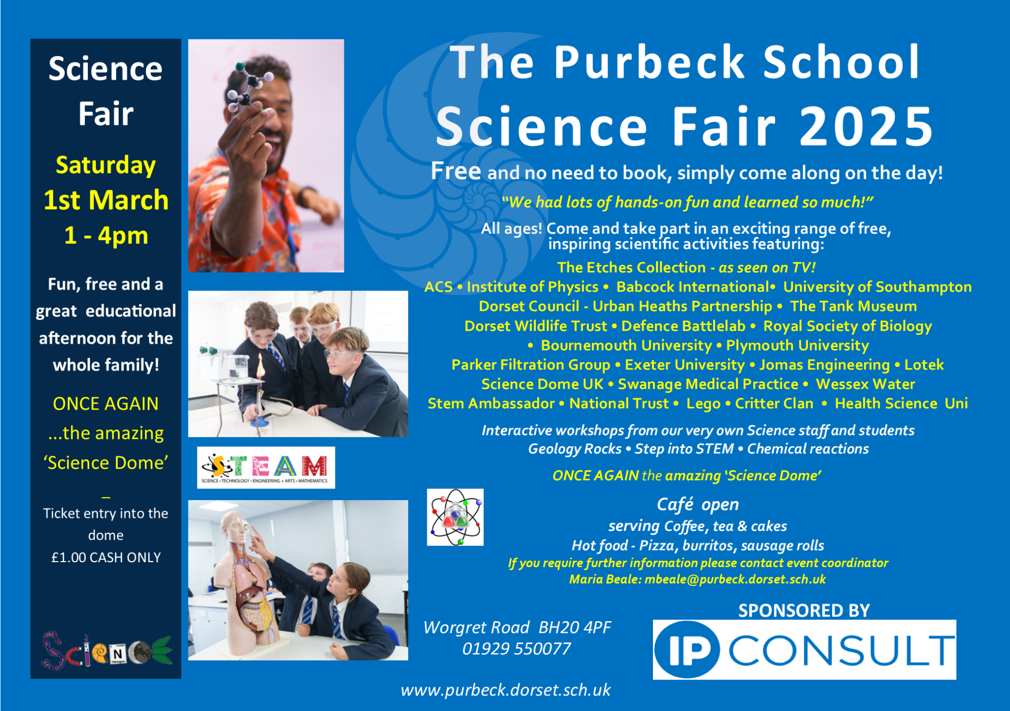 If you require further information please contact event coordinator Maria Beale: mbeale@purbeck.dorset.sch.uk