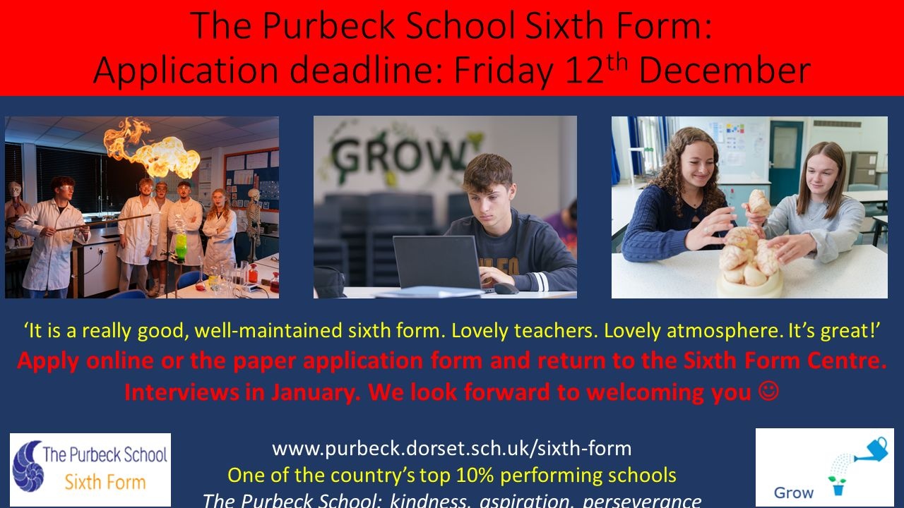 The Purbeck School Sixth Form Application deadline: Friday 12th December