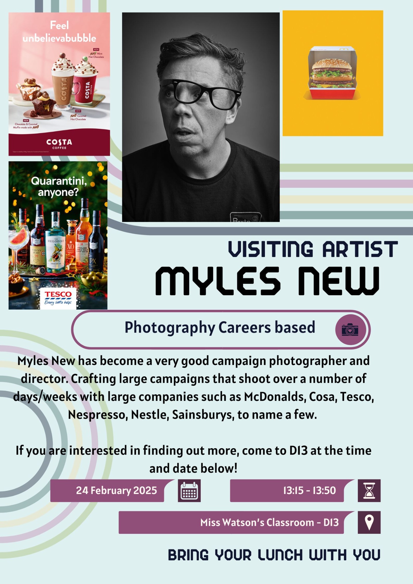 Myles New has become a very good campaign photographer and director. Crafting large campaigns that shoot over a number of days/weeks with large companies such as McDonald's, Cosa, Tesco, Nespresso, Nestle, Sainsbury's, to name a few.