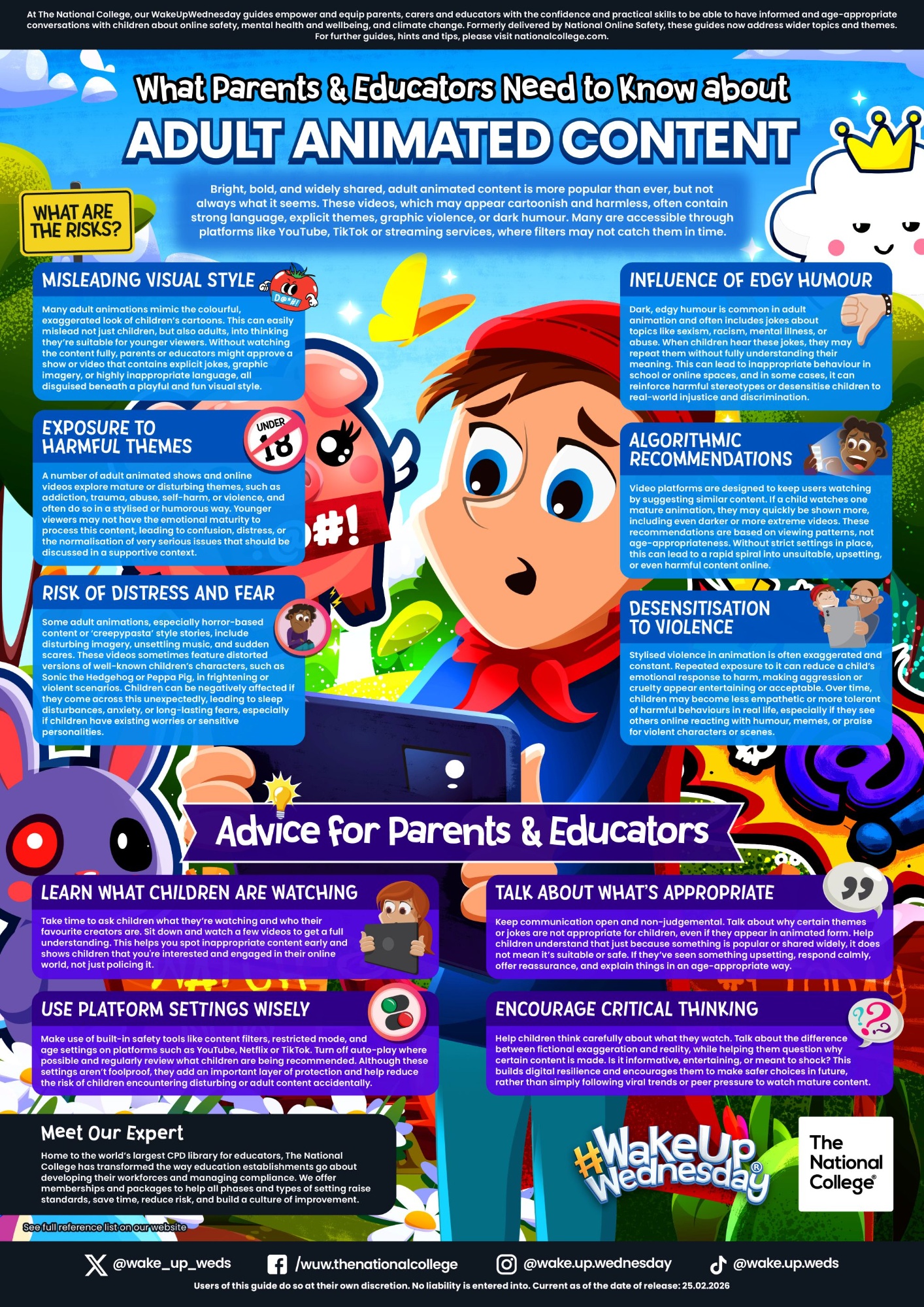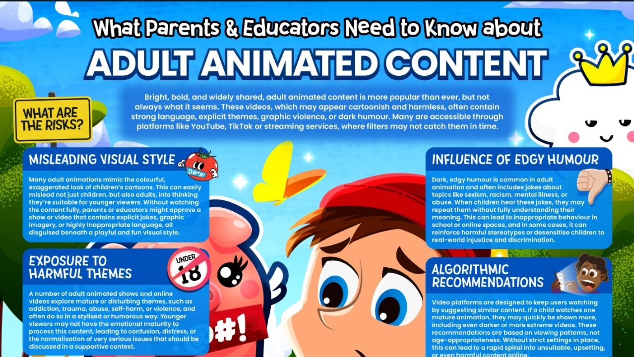 This #WakeUpWednesday guide helps parents and educators understand the risks, from misleading visuals and algorithm-driven recommendations to desensitisation and edgy humour. It also offers practical advice on platform settings, open conversations and building children’s critical thinking, so young people can navigate online animation safely and confidently.