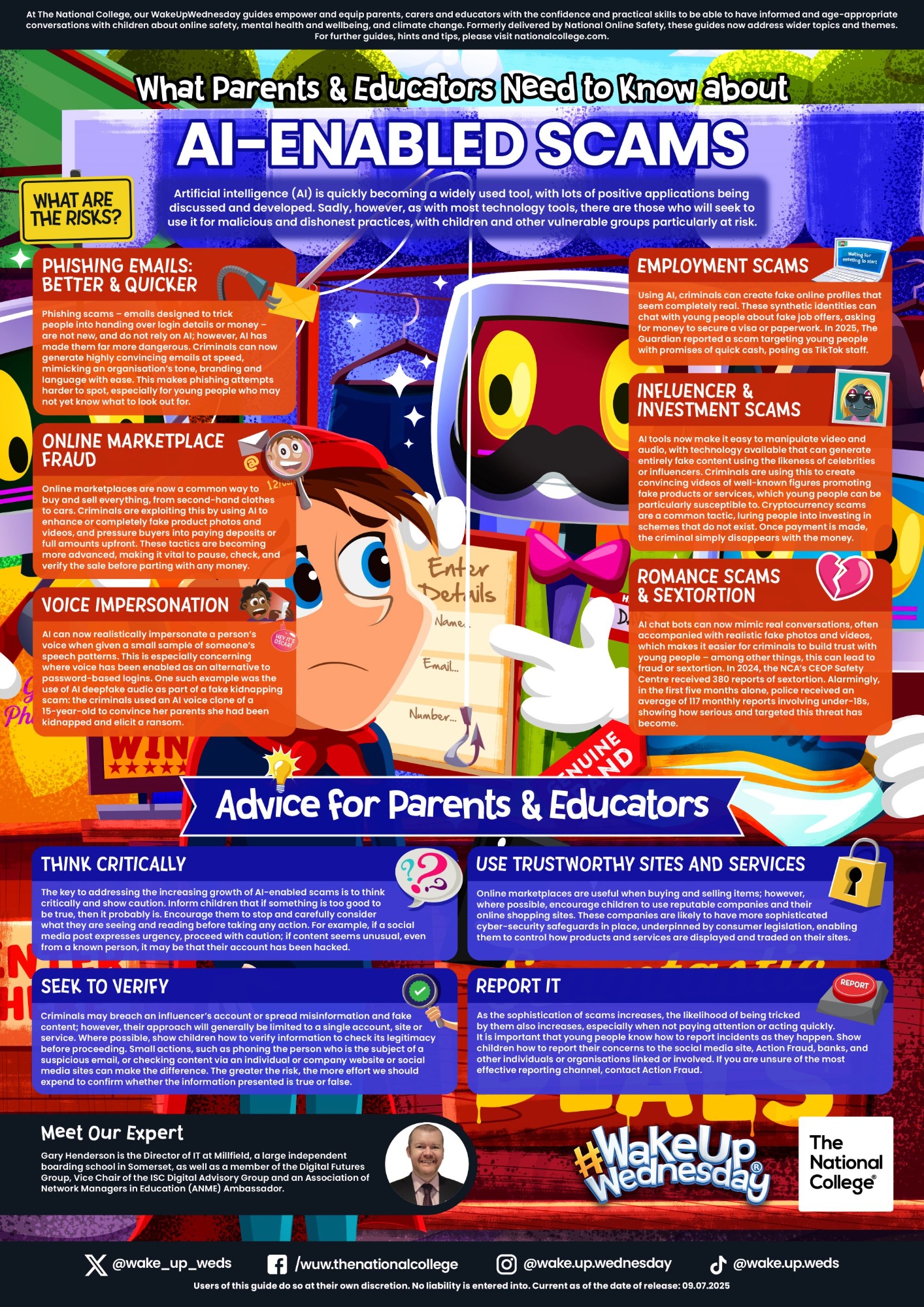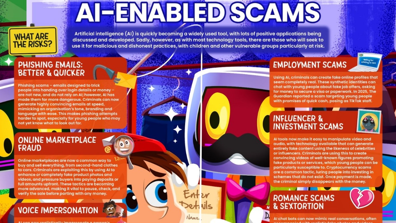 This free online safety guide explores how AI is being exploited in certain online scams, revealing the risks for young people – everything from phishing and sextortion to deepfake fraud and voice cloning.