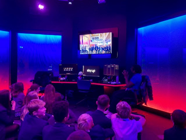 Sky focus on the three Cs of creativity, collaboration and communication, and the pupils had to utilise these skills both within their own groups and across the separate groups, as well as learning to use the state-of-the-art equipment in the studios. As if all that wasn’t enough excitement, we were also visited by Ruth Cadbury, the local MP who was visiting Sky that day, who watched our groups at work and chatted to the pupils, and had a tour of the Sky Sports studios, where we watched the live broadcast going out, and chatted with Mike Wedderburn, Sky Sports presenter and the very first person to present on day one of Sky’s broadcasting.