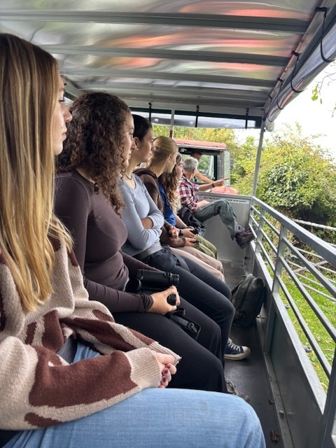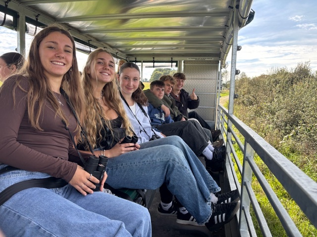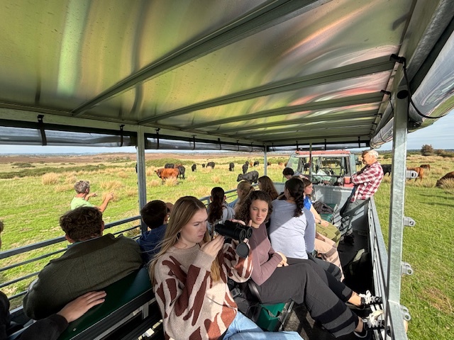 On Wednesday, this year’s cohort on The National Trust’s Leadership Programme made their first outside learning visit as we visited Hartland Farm near Corfe Castle. We were welcomed by The National Trust’s Jill (Senior Volunteering & Community Officer and Mark (Countryside Manager), and Jake the tenant farmer at Hartland. The group of Year 12 and 13 students eagerly grasped binoculars and set off on a tractor trailer tour of the farm’s extensive land. Jake educated us about leading ecological initiatives including tree planting and the benefits of bull pits which are dug by bulls and can create unique, localised habitats for pioneer plants and insects.